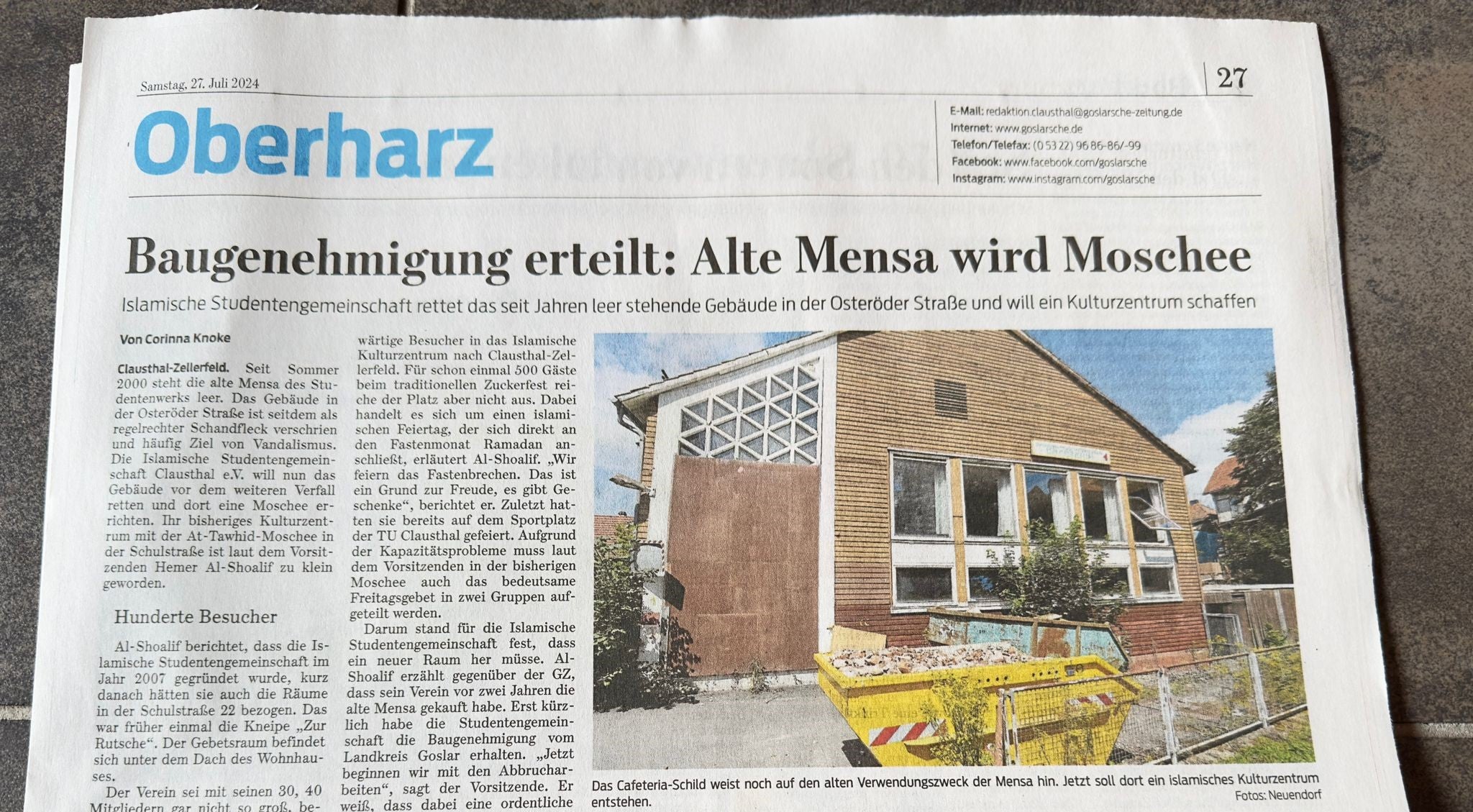 Donate nowDie Islamische Studentengemeinschaft Clausthal e.V. (ISC) verfolgt als Religionsgemeinschaft ausschließlich und unmittelbar gemeinnützige Zwecke im Sinne der steuerbegünstigten Zwecke der Abgabenordnung. Vision Die ISC fördert die Bildung, Erziehung und das soziale Engagement der Studierenden in Clausthal-Zellerfeld. Sie widmet sich insbesondere den kulturellen und religiösen Belangen muslimischer Studierender und Bewohner von Clausthal-Zellerfeld. Gleichzeitig setzt sie sich für eine stärkere Integration muslimischer Studierender in die deutsche Gesellschaft ein.